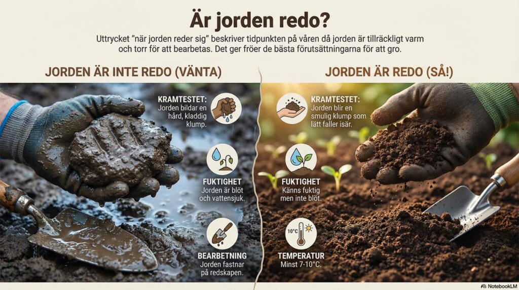 Att börja gräva och plantera i en jord som fortfarande är för kall och blöt är ett av de vanligaste misstagen. Det förstör jordens struktur, särskilt om du har lerjord, och gör den kompakt, syrefattig och svårarbetad för resten av säsongen. Men hur vet man när jorden ”rett sig”, som det heter på trädgårdsspråk? Det här handlar inte om ett datum i kalendern, utan om att läsa av jordens faktiska tillstånd – en grundläggande färdighet för varje trädgårdsmästare.