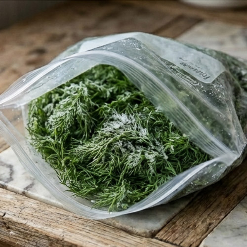 - Hackade i påsar: Den snabba metoden. Rengör, torka, hacka sen fyll en fryspåse. Tryck ut så mycket luft som möjligt och frys. Bäst för dill, persilja, basilika och gräslök. Glöm inte att skörda på morgonen!