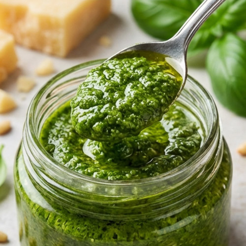 Pesto: Den färgstark, väldoftande och välsmakande röra kan göras med mycket annat en det klassiska basilika, vitlök, pinjenötter, olivolja och pecorinoost! Allt från morotsblast till gröna ärtor i kombination med olika nötter och vitlök funkera lika bra. Låt fantasin flöder.