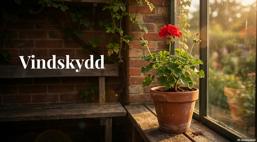 Välj en plats skyddad från starka vindar för att undvika bladskador. Bladens hårigheten (pubescens) är ’by design’. Den båda skyddar bladen från stark UV-ljus och håller fuktig luft nära bladytan vilket reducera vattenförten. En vindutsatt pelargon kan avdunsta mer från bladen än rötterna klara av.